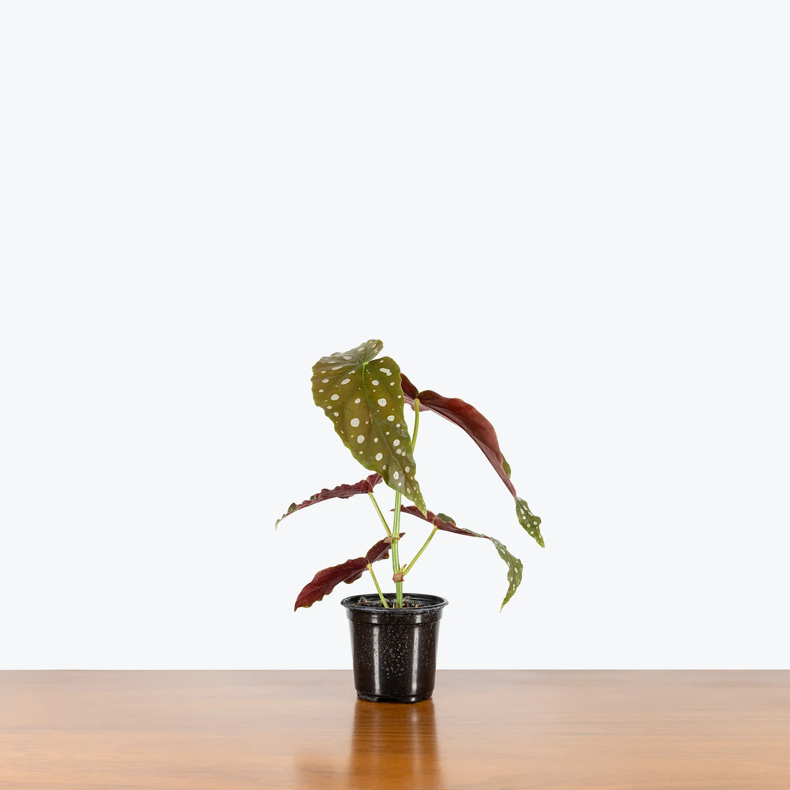 Begonia Maculata, aka Begonia Maculata ‘Wightii’, also known as Polka Dot Begonia, is definitely a show-stopper due to its stunning olive green leaves with burgundy undersides and contrasting spots. It is a cane-like species native to Brazil and grows large clusters of white flowers. It is an easy and prolific grower once its conditions are met.