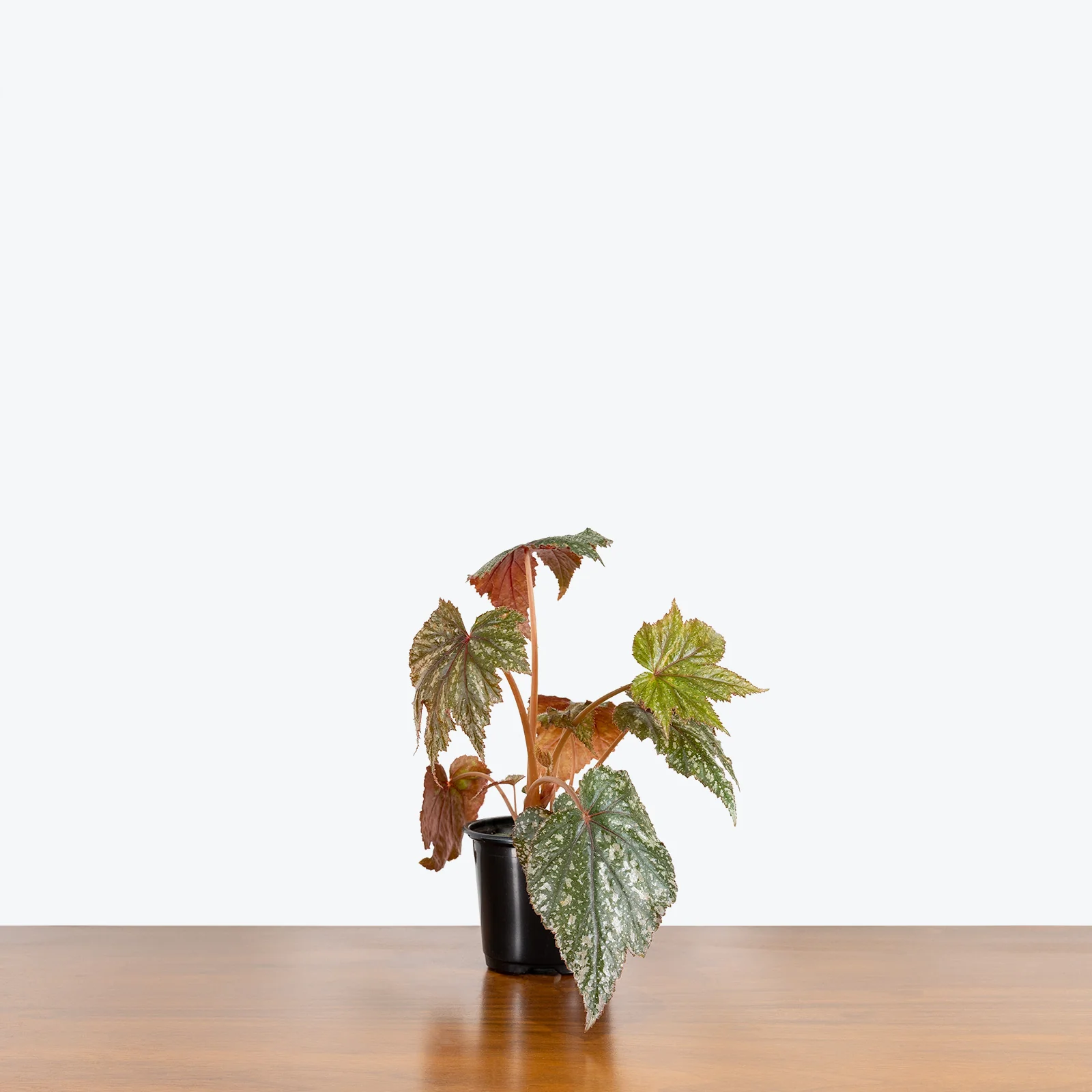 Gryphon Begonia, scientifically known as Begonia x hybrida ‘Gryphon’, is a bold and beautiful foliage plant that makes a dramatic statement in any space. Known for its durability and relatively easy care, this hybrid begonia produces large, palmate leaves with a glossy green base and a striking silver overlay. The deep red undersides and stems add rich contrast, creating a truly eye-catching display. It’s a fantastic choice for containers, tabletops, or shady garden corners.